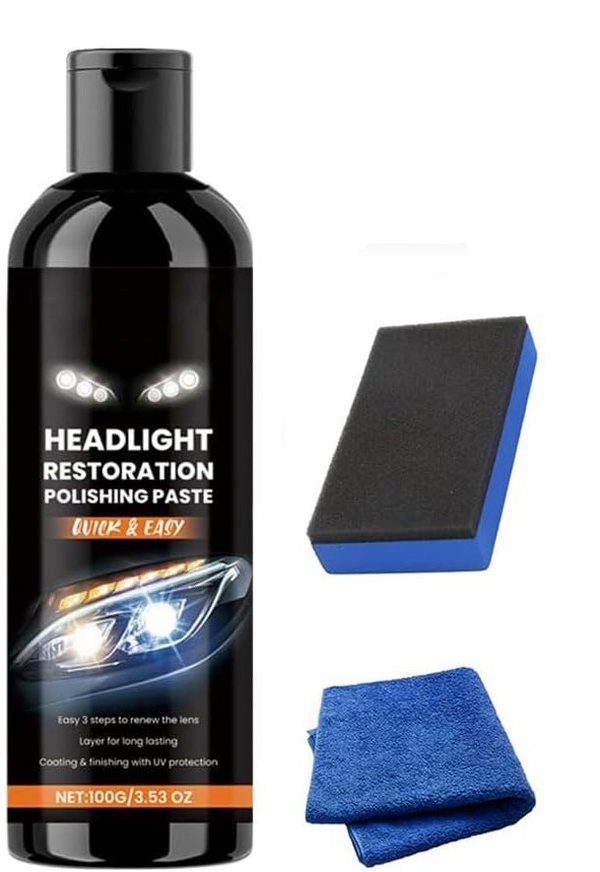 Kitul elimină îngălbenirea și ceața, redând claritatea farurilor. Aplici pasta, ștergi și lustruiești, fără ajutor profesional.